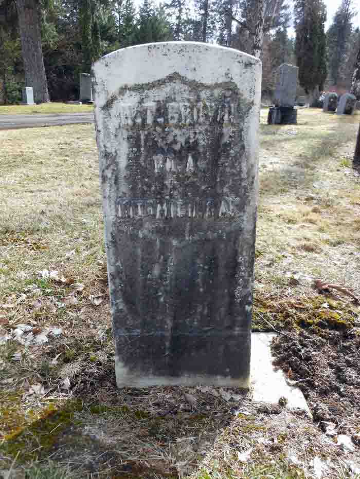 Horace Titus Brown (1844-1900) Horace T. Brown Is Dead: Veteran Newspaper Man Has. Passed AwayHorace Brown Headstone, Greenwood Memorial Terrace, SpokaneGreenwood Memorial Cemetery H T Brown plotsBack of Brown monument indicating children: Babe, George, Bessie, Ralph, Waldow WBrown monument front Greenwood Memorial Terrace Spokane, Washington